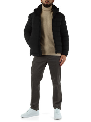 collo altocappuccio non rimovibile con coulissemaniche lunghe con polsi elasticizzatichiusura con zip a due vietasche frontali con zippatch logo sulla manicapannelli a contrastoimbottitura: vera piumaAltezza del modello (cm): 180Taglia indossata:...