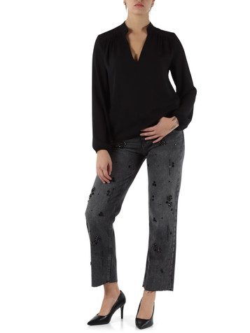 Scegli opzioni LIU JO Camicia in crepe e satin di viscosa Altezza della modella (cm): 175Taglia indossata: 40colletto classicomaniche lunghe con bottoni ai polsichiusura con bottoni a scomparsalogo in strass100%VISCOSE MSRP: €149,00 €104,30