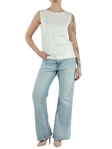 cavallo (cm): 28lunghezza della gamba (cm): 76fondo (cm): 16,5Altezza della modella (cm): 175Taglia indossata: Svita semielasticizzatachiusura con bottone e zip a scomparsatasche frontalidue tasche posteriorietichetta logo in tessuto frontale100%COTTON