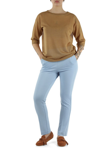 Scegli opzioni EMME Pantalone punto Milano PALACE cavallo (cm): 29lunghezza massima (cm): 84fondo (cm): 26,5chiusura con bottone a pressione e zip a scomparsatasche frontalitaglio drittoorlo non rifinito in fondoAltezza della modella (cm): 175Taglia indossata: 4051%COTTON45%POLYAMIDE4%ELASTANE MSRP: €90,00