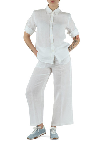 Scegli opzioni EMME Camicia in lino GIRELLO colletto classicomaniche tre quarti con bottonichiusura con bottonifondo arrotondatoAltezza della modella (cm): 175Taglia indossata: 40100%LINEN MSRP: €101,00