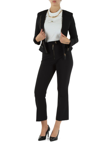Scegli opzioni ELISABETTA FRANCHI Giacca in doppio crepe con inserti in ecopelle Altezza della modella (cm): 170Taglia indossata: 40girocollomaniche lunghe con zip ai polsichiusura con zipzip decorativeinserti in ecopellespalline imbottitesfoderata96%POLYESTER4%ELASTANE MSRP: €680,00 €476,00