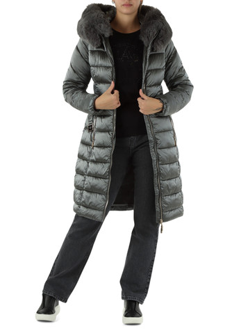tessuto in nylon imbottito e trapuntatocollo altocappuccio rimovibile con coulissemaniche lunghe con polsi elasticizzatichiusura con zip a due vietasche frontali con zippatch logo sulla manicafondo elasticizzatopolsi e fondo a costineimbottitura: vera...