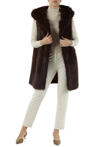 Scegli opzioni BULLY Smanicato in eco pelliccia con cappuccio Altezza della modella (cm): 175Taglia indossata: 40ecopellicciagirocollocappuccio non rimovibilesenza manichechiusura con gancettitasche frontalipannelli a contrastosfoderato100%POLYESTER MSRP: €322,00