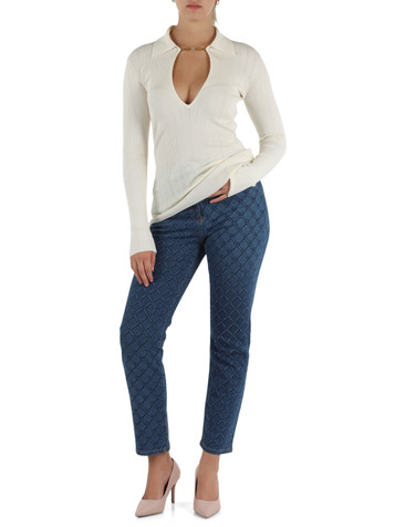Scegli opzioni TWINSET Maglia collo a V in misto lana e mohair Altezza della modella (cm): 175Taglia indossata: Scollo a Vmaniche lunghe con polsi elasticizzatiplacca logo sul retrolavorazione a magliamotivo decorativo su tutta la superficie40%POLYAMIDE30%MOHAIR30%WOOL MSRP: €261,00 €182,70