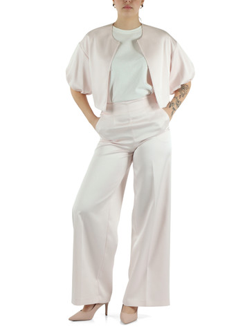 Chiusura con bottone gancetto e zip a scomparsatasche frontalitasche a filo sul retrocatena decorativa rimovibilepinces frontaliMade in ItalyAltezza della modella (cm): 175Taglia indossata: 40cavallo (cm): 38lunghezza della gamba (cm): 6,5fondo (cm):...