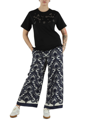 Scegli opzioni ELENA MIRÒ T-shirt in cotone con strass applicati Altezza della modella (cm): 175Taglia indossata: Sgirocollomaniche cortestrass applicatispacchetti lateralipannello posteriore leggermente più lungo100%COTTON MSRP: €130,00 €78,00
