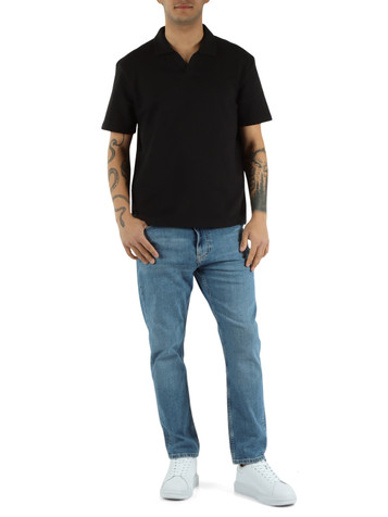 cavallo (cm): 27lunghezza della gamba (cm): 82fondo (cm): 18Altezza del modello (cm): 185Taglia indossata: 32chiusura con bottone e zip a scomparsacinque taschepatch logo sul retroetichetta logo in tessuto frontalearee intenzionalmente sbiaditearee...