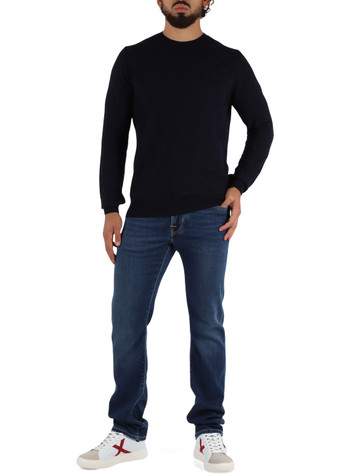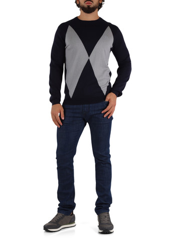BLU SCURO | Maglia in misto lana vergine con motivo decorativo