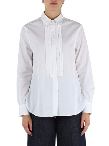 BIANCO | Camicia in popeline di cotone con rouches