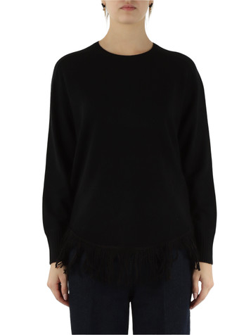 Maglia in misto lana e cashmere con frange | 5BEDAM470Z0055M 33 NERO