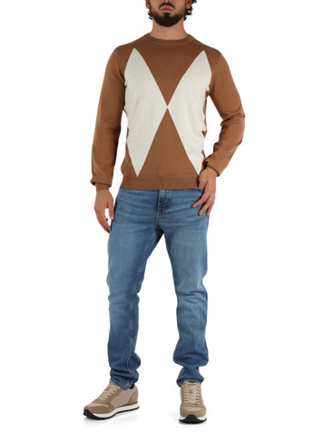 BLU SCURO | Maglia in lana merino e cotone con motivo decorativo