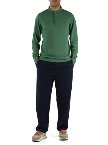 Polo manica lunga in cotone piquet stretch tinto in capo