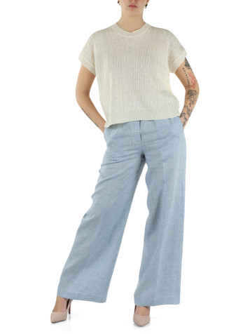 Scegli opzioni PESERICO Pantalone in lino con dettaglio punto luce vita elasticizzatatasche lateralitasche a filo sul retrodettagli in metallo finitura argentoMade in Italycavallo (cm): 26lunghezza della gamba (cm): 70fondo (cm): 17Altezza della modella (cm): 175Taglia indossata: 40100%LINEN MSRP: €325,00