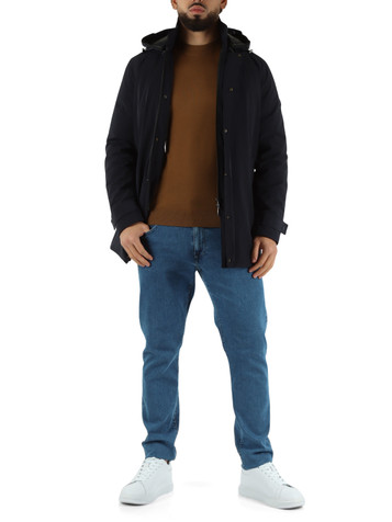 Altezza del modello (cm): 180Taglia indossata: 48collo altocappuccio rimovibile con coulissemaniche lunghe con polsi elasticizzatichiusura con zip a due vietasche frontali con zipstampa logo sulla manicapannelli a contrastofoderatoimbottitura: vera...